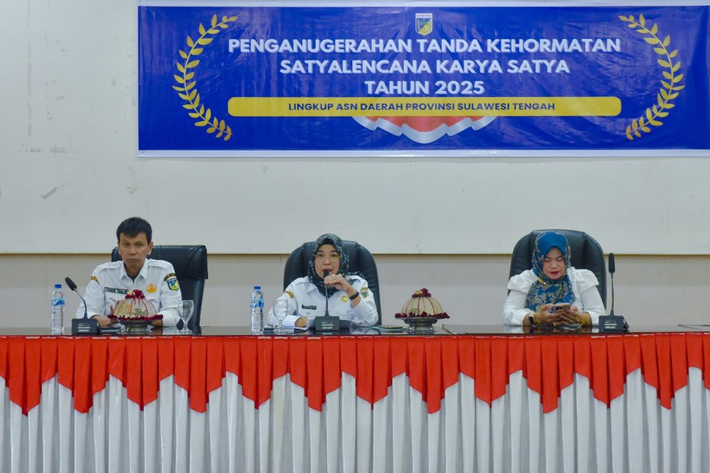 Palu – Pemerintah Provinsi Sulawesi Tengah menyerahkan tanda kehormatan Satyalancana Karya Satya kepada 100 Aparatur Sipil Negara (ASN) lingkup Pemprov Sulteng, Rabu (27/8/2025) di Gedung Pogombo, Kantor Gubernur.